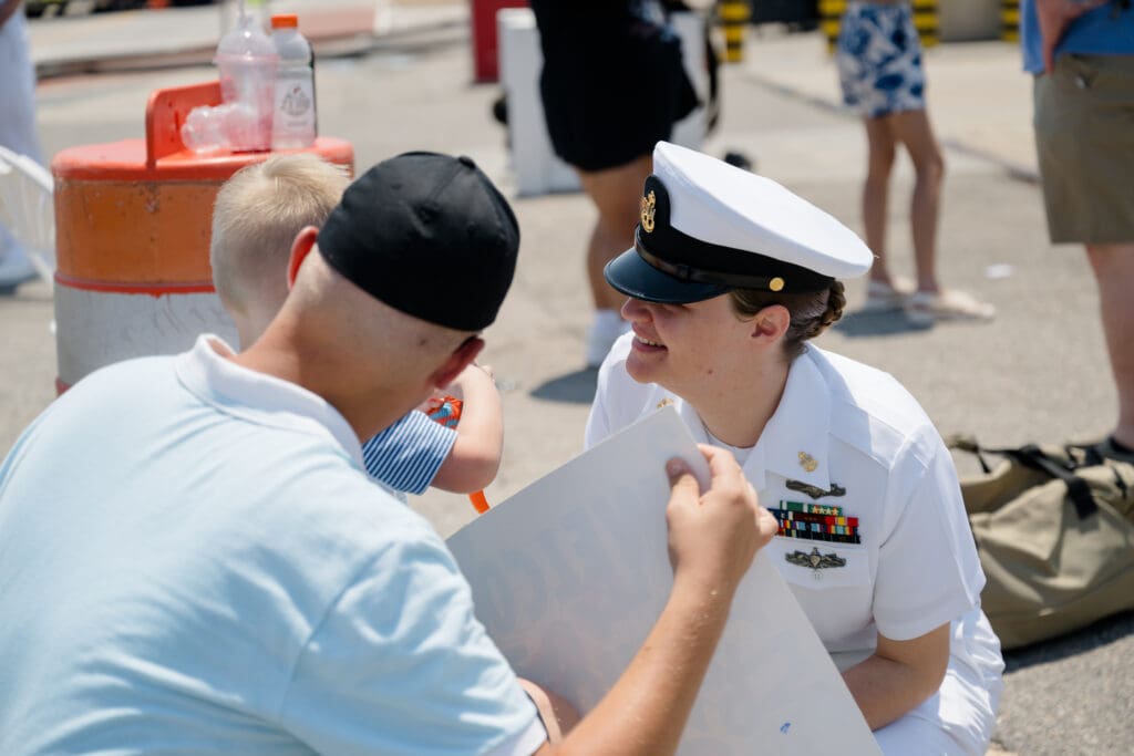 As someone who grew up in the Navy and is now a Navy spouse myself, I understand these moments in a deeply personal way. I know what it feels like to wait. I know what it feels like to watch that ship pull in or that aircraft land.